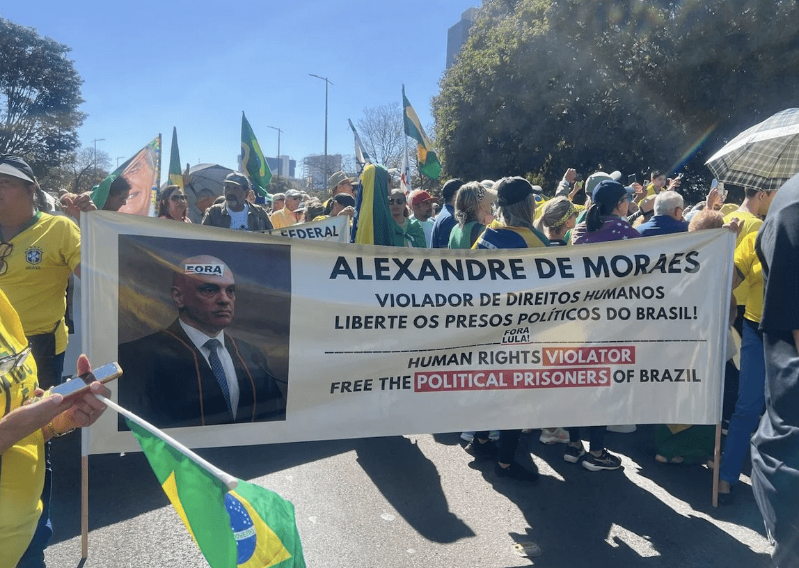 Os manifestantes pediram o impeachment do ministro Moraes e defenderam a anistia para os envolvidos nos atos de 8 de janeiro.