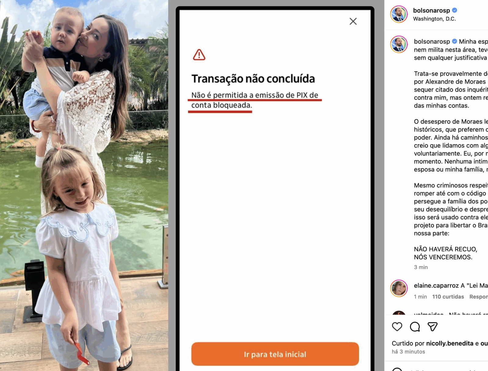 Ele afirma que ela não tem envolvimento político e classificou a medida como “ato arbitrário” supostamente determinado pelo ministro Alexandre de Moraes, do Supremo Tribunal Federal (STF). Segundo o parlamentar, nem ele nem sua esposa foram oficialmente citados sobre o inquérito que teria motivado a medida.