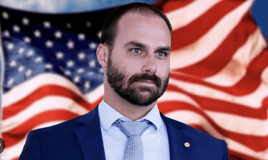 Eduardo Bolsonaro, deputado federal em exílio, filho do ex-presidente Jair Bolsonaro.”