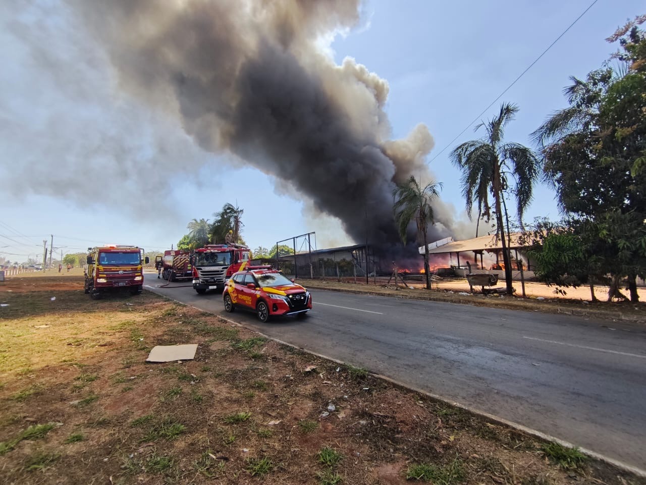 • Segundo informações do comando da operação, não houve vítimas. O incêndio foi contido e os riscos de propagação já foram eliminados. No entanto, os trabalhos de combate, contenção e rescaldo devem continuar até a noite, devido à grande quantidade de material combustível no local e às condições climáticas adversas típicas deste período, como a baixa umidade do ar e ventos moderados.