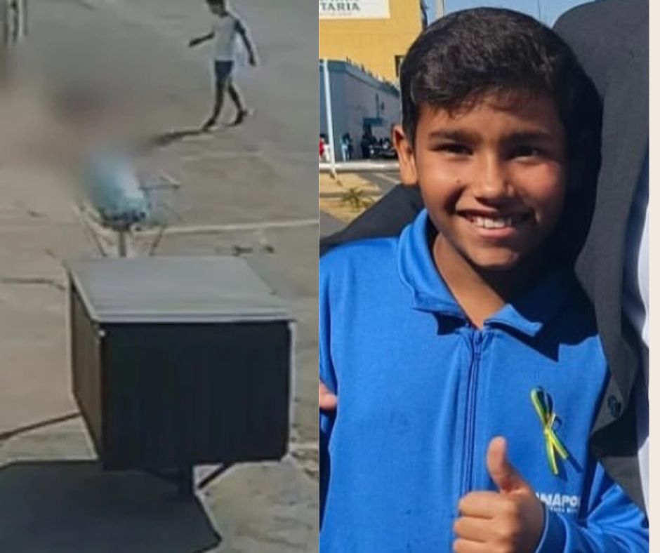 • Câmeras de segurança registraram o momento em que João Victor toca a fiação e cai no chão, enquanto o amigo corre para pedir ajuda.
