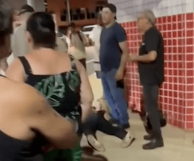 O homem foi encontrado caído na calçada, já dominado pela população, e encaminhado à delegacia.