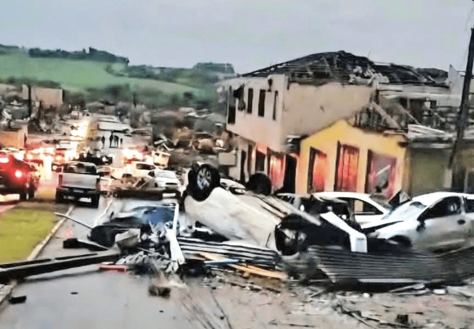 O tornado provocou colapso de estruturas, destelhamentos em massa e interrupções no fornecimento de energia em várias regiões do município.