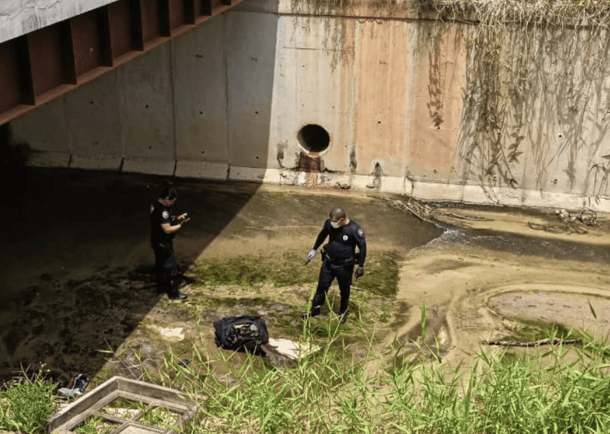 Equipes foram até a Estrada Ecoturística de Parelheiros e localizaram a mala dentro de um córrego. Ao abrirem o objeto, os agentes constataram que havia partes de um corpo humano.
