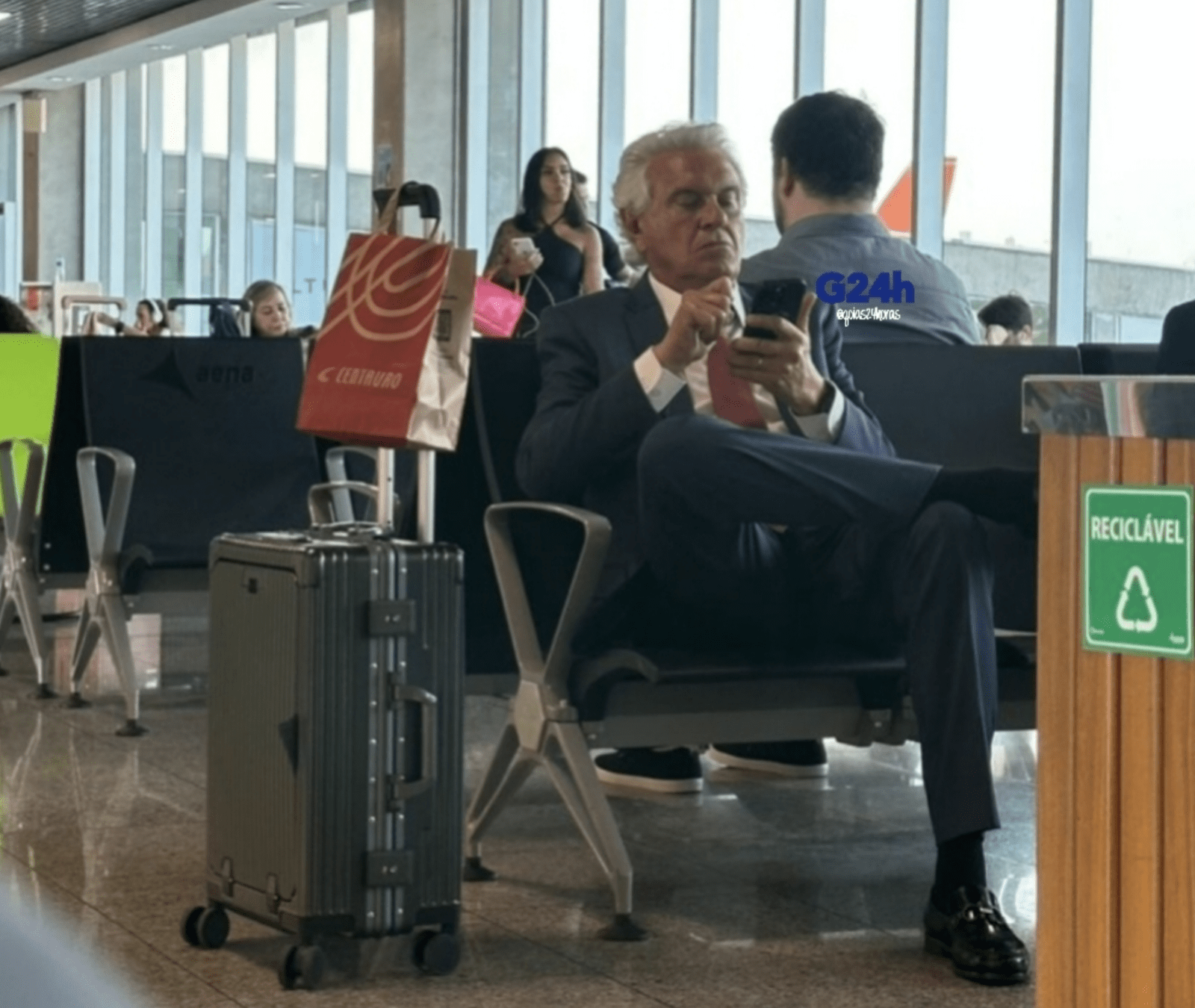 Durante cerca de uma hora no aeroporto, acompanhamos a movimentação para observar se ele seria reconhecido fora de Goiás. O resultado surpreendeu: ninguém se aproximou para cumprimentar. Ou seja: passou do rio Meia Ponte, ninguém sabe quem é.