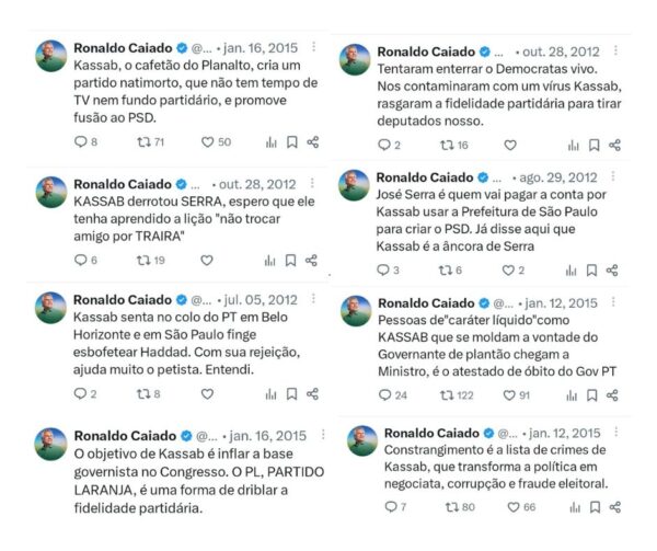 Críticas • Após a repercussão negativa de publicações antigas em que atacava o presidente do PSD, Gilberto Kassab, o governador de Goiás, Ronaldo...